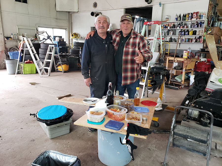 We vervangen de tie rod (stabilisatorstang) en ik ben de aangewezen persoon om de hoek slijper erop te zetten. Lets eat first!