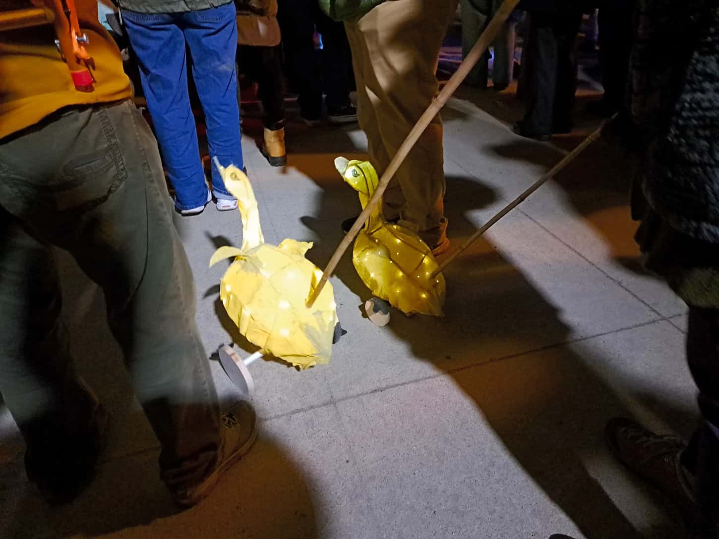 Toen we de hellingen van de middelgrote berg bereikten, namen we afscheid van de draken, elanden en andere wonderlijke wezens van de wildernis. Terwijl de zonderlinge figuren hun vreemde ding deden, spetterden onze twee eendenvrienden in een nabijgelegen vijver in Baker Street. Plotseling, terwijl het laatste licht van Durins Dag de natte steen raakte, vertelden onze rammelende magen ons dat het tijd was voor onze gevleugelde gidsen om de weg naar huis te wijzen.